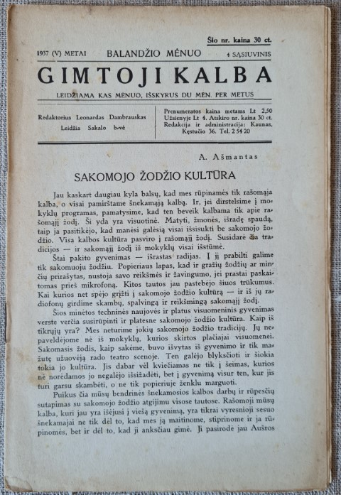 Gimtoji kalba, 1937/4