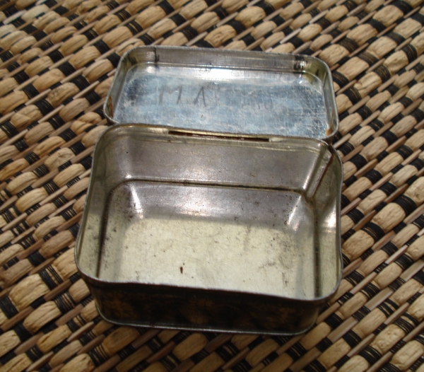 Metalinė. 1938 m. Aukštis – 5 cm. Ilgis – 8,5 cm. Plotis – 5,5 cm.