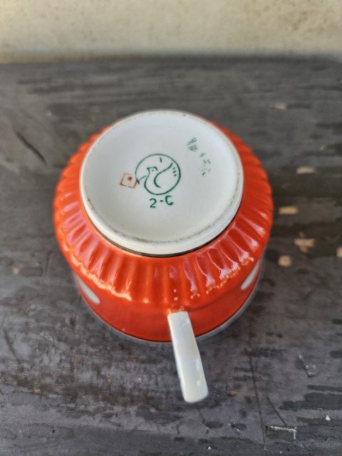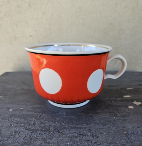 Puodelis su baltais „žirneliais”
