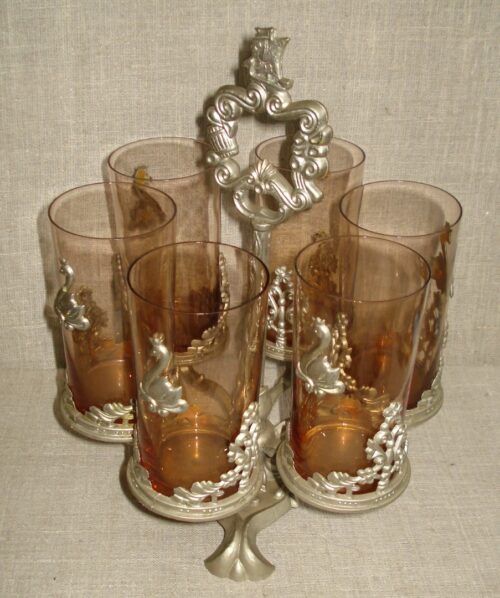 Ant vienos stiklinės trūksta dekoracijos – gulbės.