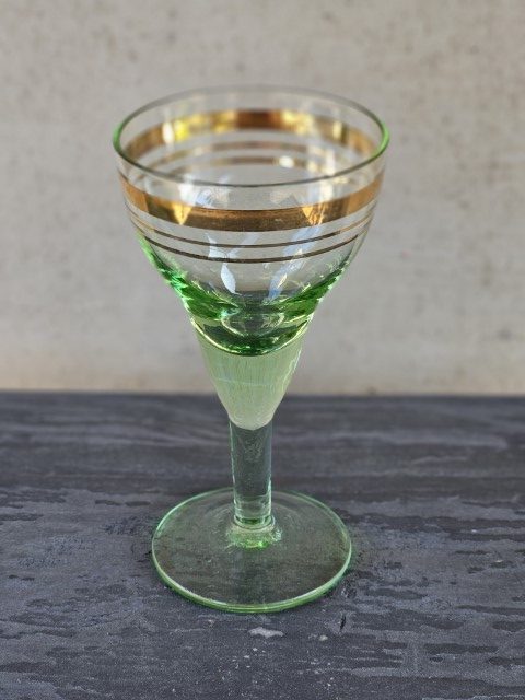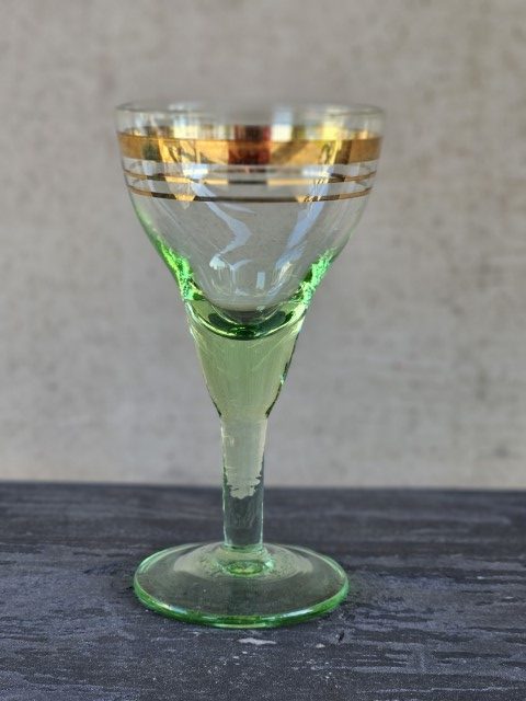 Žalsvo stiklo taurelė ant kojelės