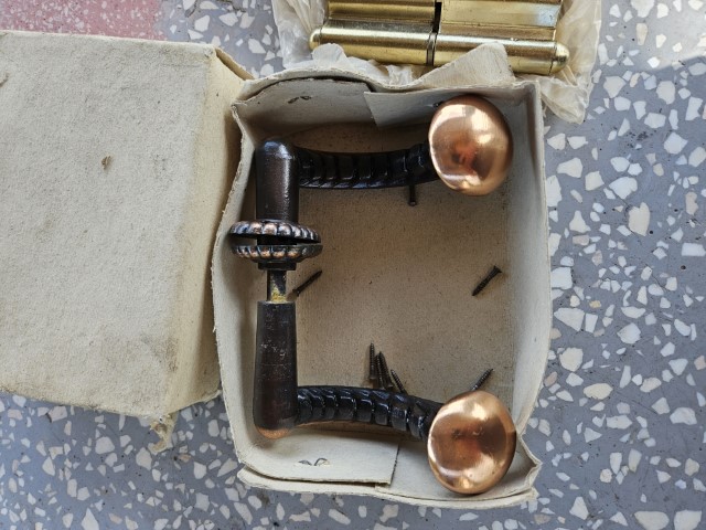 Durų vyriai ir rankena
