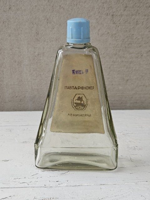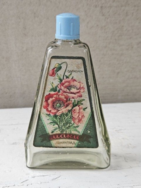 Kvepalų buteliukas su etikete (odekolonas „Aguonos”)