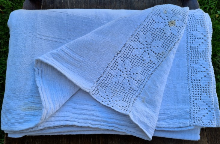 Balta. Yra dėmelių.