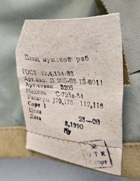 Vyriškas darbinis lietpaltis („ploščius” ), 1990