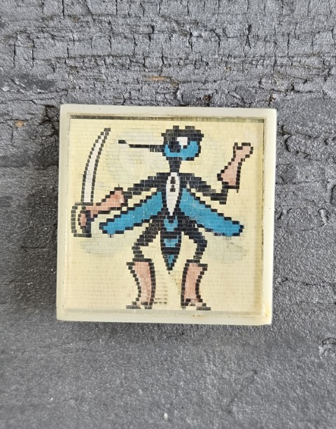Plastikas. Judinant keičiasi vaizdas. Išmatavimai: 2,5 x 2,5 cm.