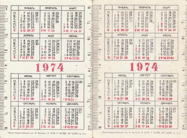 Kalendoriukai 1974 2 vnt.