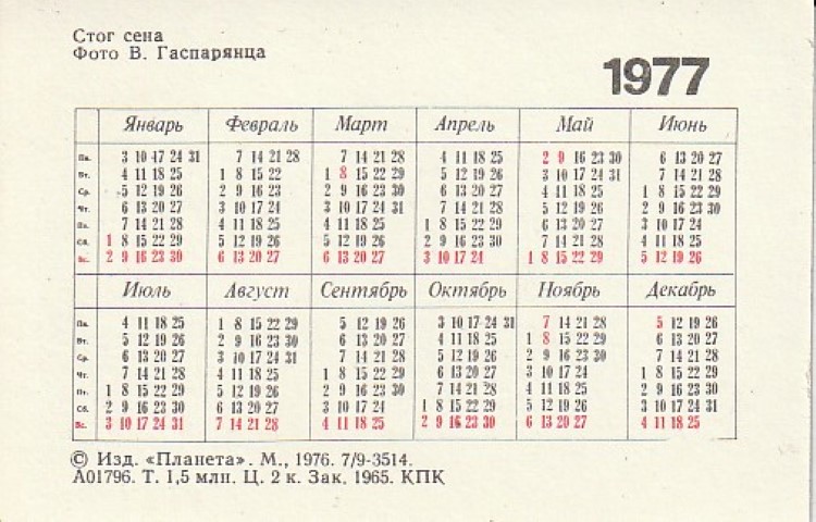 Kalendoriukas 1977