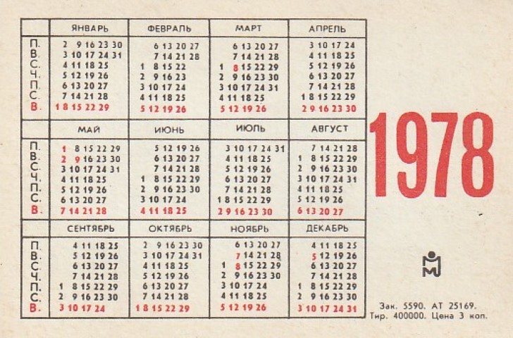 Kalendoriukas 1978