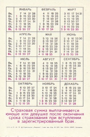 Kalendoriukas, 1980