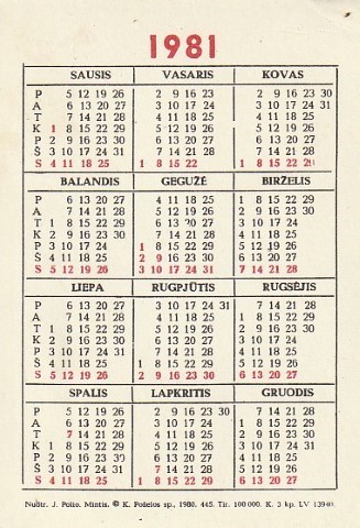 Kalendoriukas, 1981