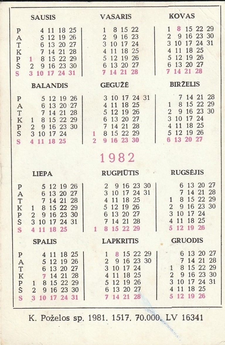 Kalendoriukas , 1982