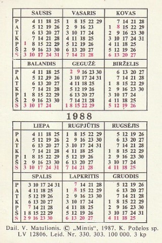 Kalendoriukas 1988