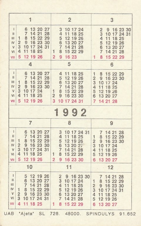 Kalendoriukas, 1992