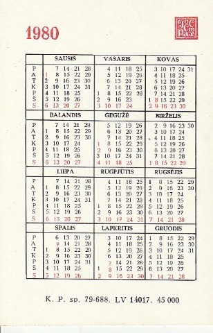 Kalendoriukas „Valstybinis draudimas”, 1980