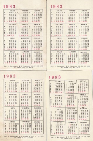 Kalendoriukų rinkinys, 1983, 4 vnt.