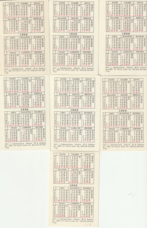 Kalendoriukų rinkinys, 1988