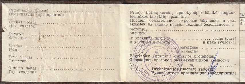 Lietkoopsąjunga. Saugumo technikos pažymėjimas