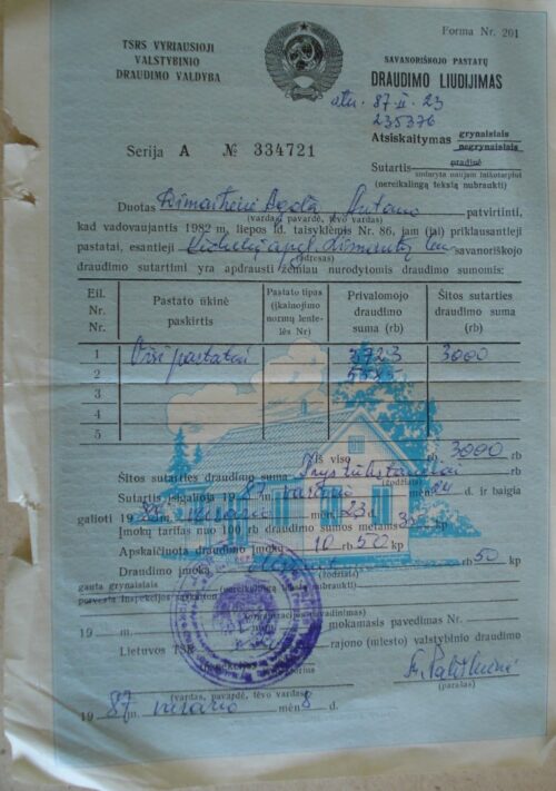 Pastatų draudimo liudijimas, 1987 m.