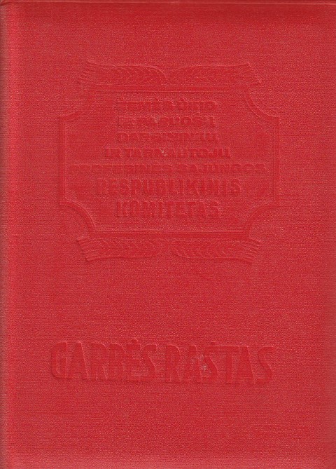 Žemės ūkio ir paruošų darbininkų ir tarnautojų profesinės sąjungos respublikinio komiteto garbės raštas.