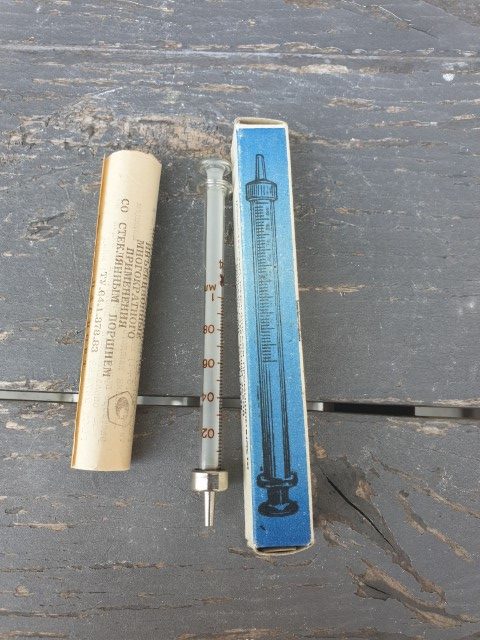 Stiklinis švirkštas dėžutėje