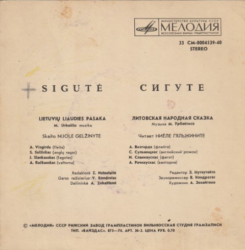 Plokštelė „Lietuvių liaudies pasaka „Sigutė”